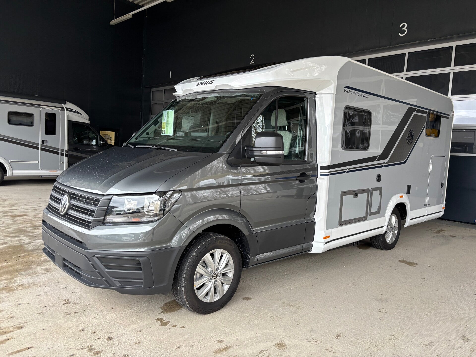 VW Crafter, 2,0 TDi, 163 PS, 8 Gang Wandlerautomatik, Frontantrieb, Indiumgrau metallic, Aufbau Knaus Van TI Vansation, Jahrgang 2025